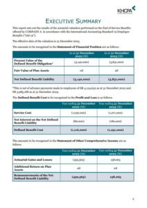 نمتلك خبرةً واسعة في إجراء التقييمات الاكتوارية وفقًا للمعايير الدولية لإعداد التقارير المالية (IAS 19) و IPSAS 39, Employee Benefits للمنشآت الصغيرة والمتوسطة.